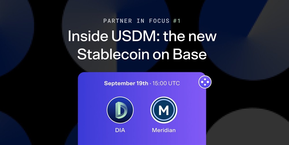 DIA will host an AMA on X with Meridian Finance on September 19th at 15:00 UTC. The discussion will delve into Meridian’s products and their journey on Base, as well as the details of DIA’s recent oracle integration with Meridian.