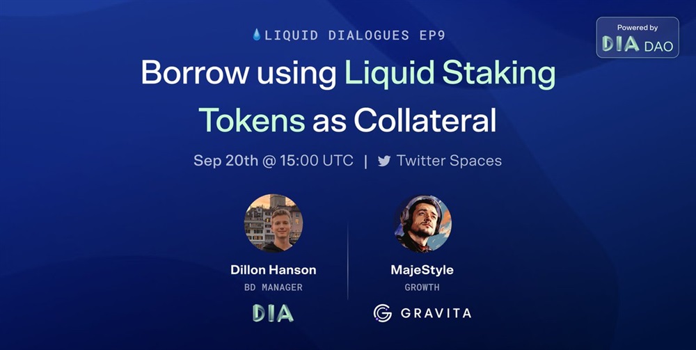 Join DIA Community Hub for the 9th episode of #LiquidDialogues next wednesday, discussing LST-collateralized borrowing with MajeStyle 🐱🦇🔊, Head of Growth & Strategy at Gravita Protocol.