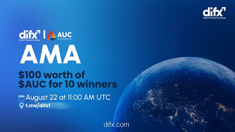 Digital Financial Exchange is hosting an AMA with the founder of Advanced Project. This event is organized to celebrate the listing of AUC tokens on the DIFX exchange. The session is scheduled to take place on August 22nd at 11:00 AM UTC.