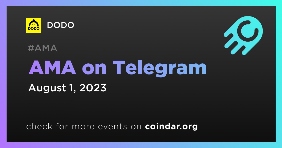 DODO will host an AMA with its co-founders on Telegram. The session is scheduled to take place on August 1st at 1:30 am UTC. The co-founders will be answering questions from the community during this session.