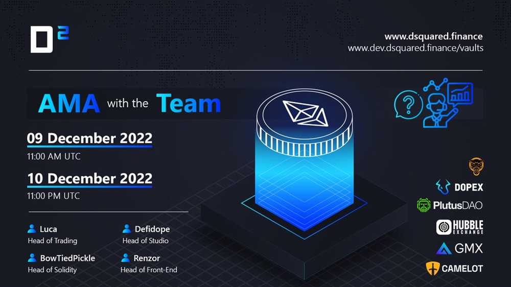 🚨 AMA with @Dsquaredfinance , @GMX_IO and @PlutusDAO_io