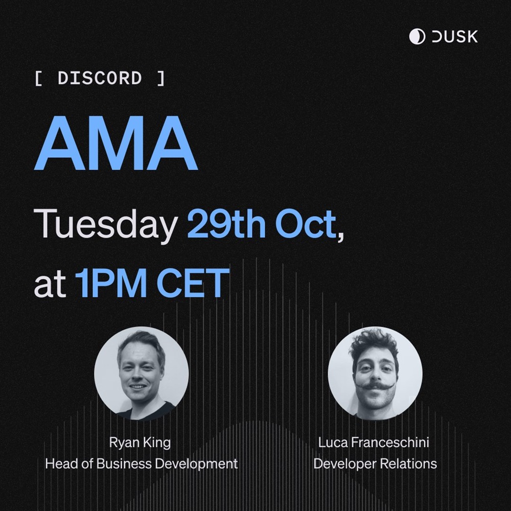 DUSK Network will host an AMA on October 29th at 11:00 UTC with members of its Business Development Team.