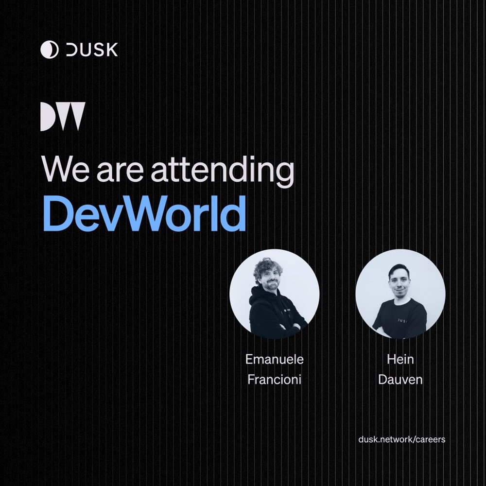 DUSK Network will participate in the DEVWorld Conference on 28th February in Amsterdam. CEO Emanuele Francioni and CTO Hein Dauven are scheduled to speak at the event.
