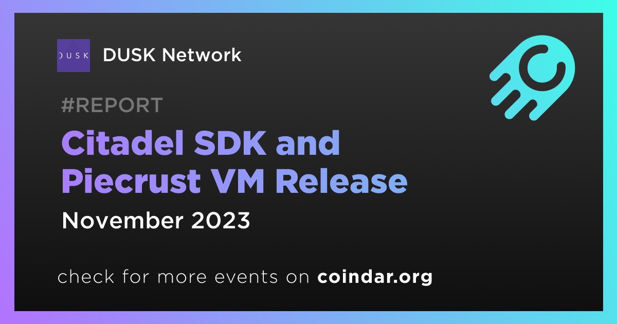 According to the October report, DUSK Network will release Citadel SDK and Piecrust VM in November.