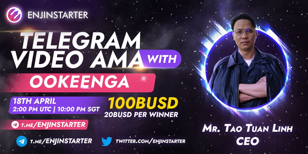 TODAY on #Enjinstarter Telegram Video AMA: Tune in as @ookeenga CEO - Tao Tuan Linh deep dive into how these NFTs will help you start your journey into Ookeenga! 🐜🐞🦗