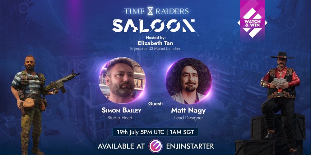 ENJINSTARTER Saloon Replay - Tune in to the replay of our chat with @PlayTimeRaiders Studio Head, Simon Bailey and Lead Designer, Matt Nagy on YouTube, tomorrow 20th July, 1PM UTC | 9PM SGT