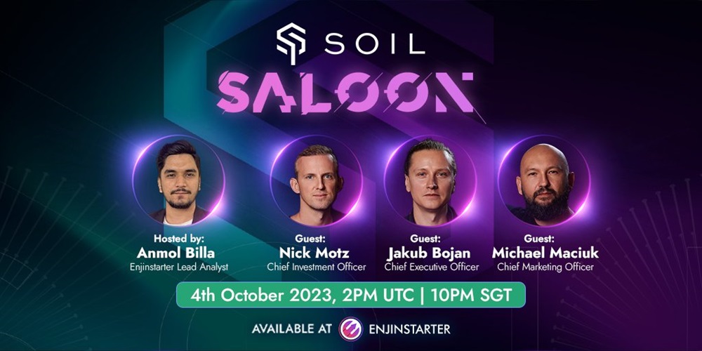 Enjinstarter will host an AMA on October 4th at 2 pm UTC. The episode will feature top executives from Soil, including CEO Jakub Bojan, CIO Nick Motz, and CMO Michał Maciuk. The discussion will focus on the future of the industry.