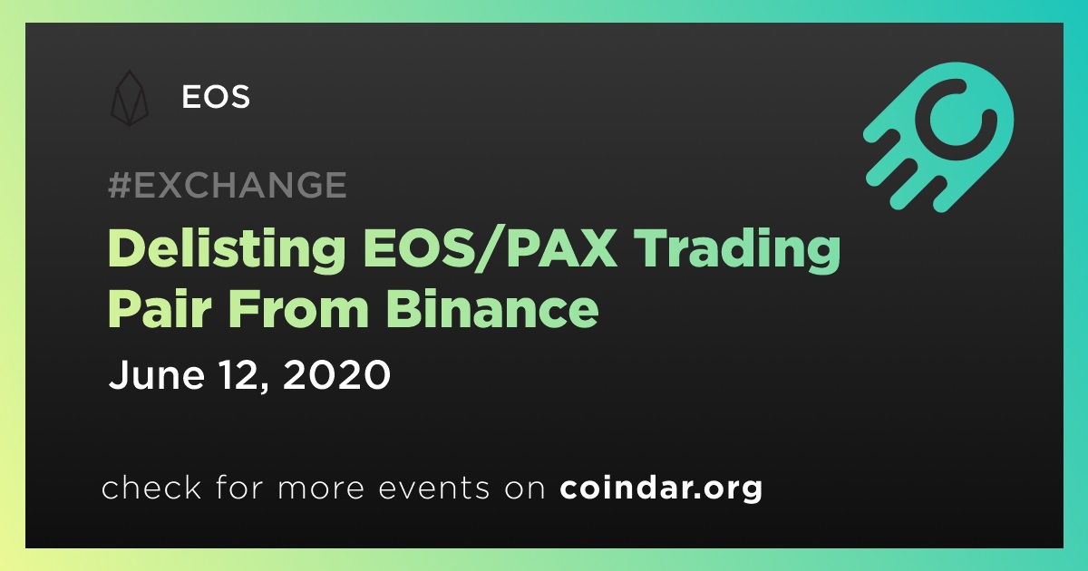 EOS: Delisting EOS/PAX Trading Pair From Binance