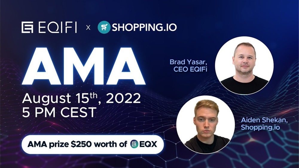 On August 15 at 5:00 PM CEST, Aiden Shekan from @shopping_io, and @YasarCorp, CEO of EQIFi, will talk about the future of shopping and finance. 🚀