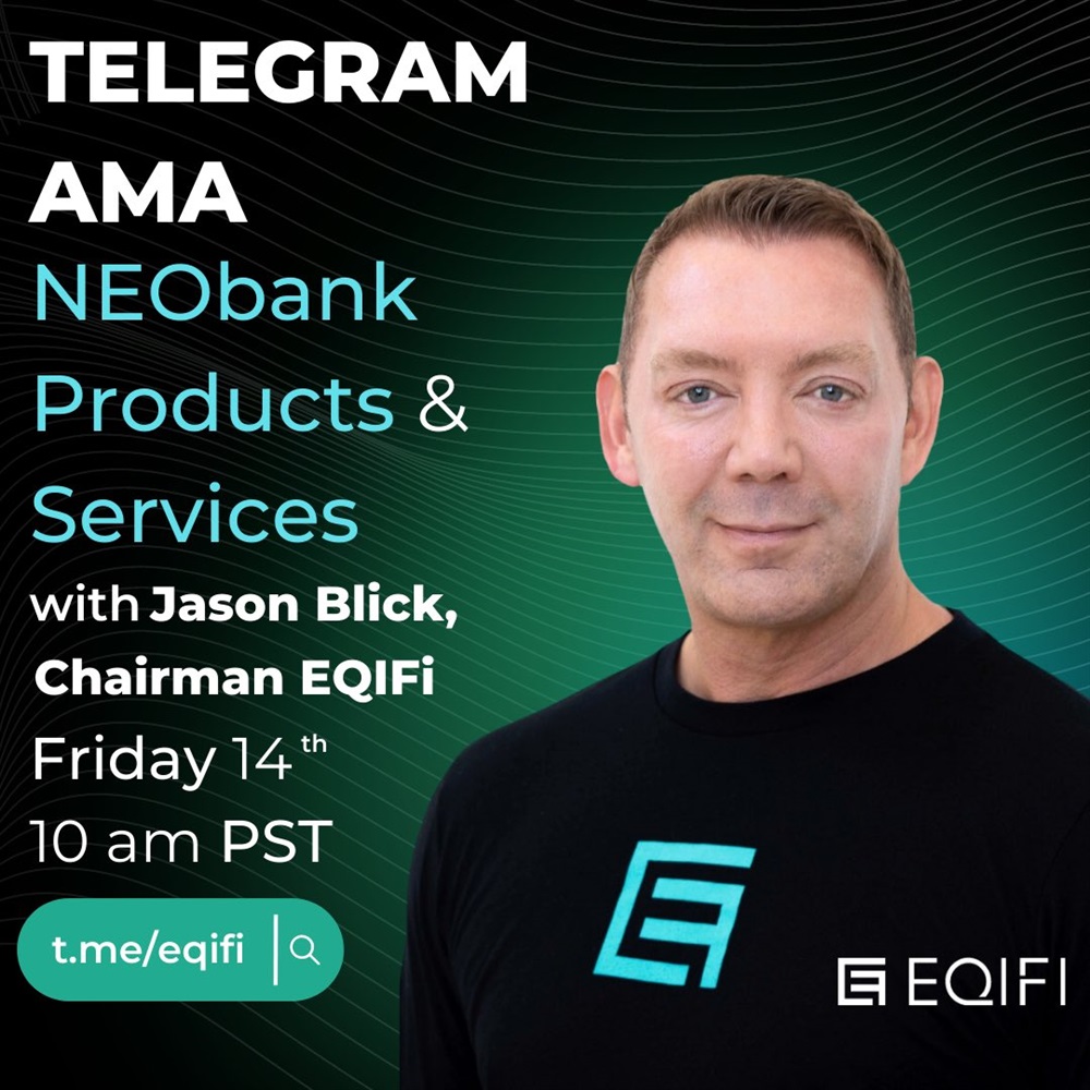 Join us this friday for an exciting AMA session with Jason Blick. Get ready to dive into discussions about EQIFi, Neobank, our products and services.
