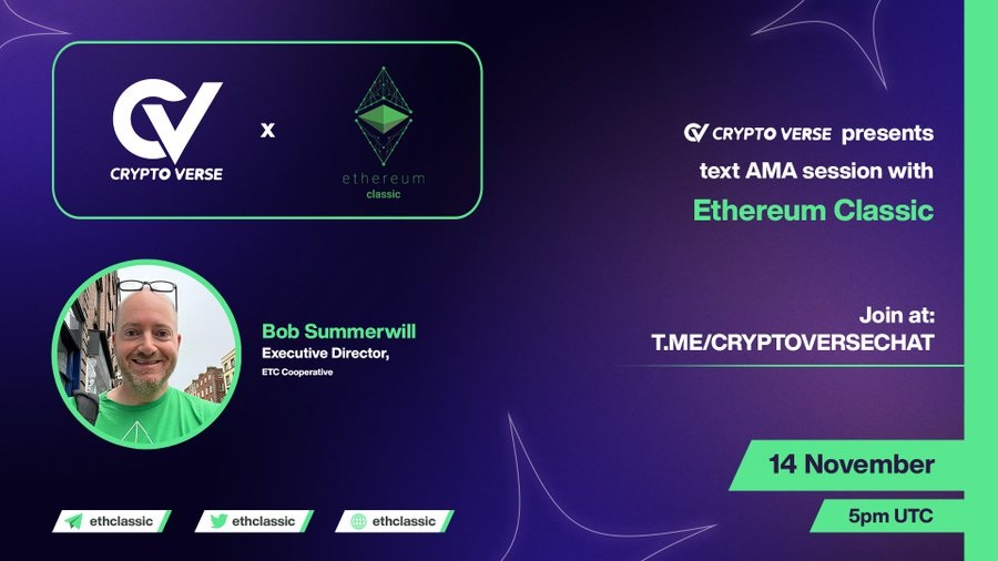 Ethereum Classic ETC: AMA on Crypto Verse Telegram
