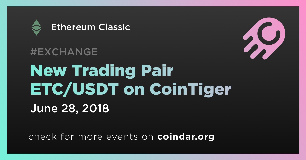 ETC/USDT trading pairs will be available on CoinTiger exchange at 16:00 on June 28th, 2018(UTC+8).