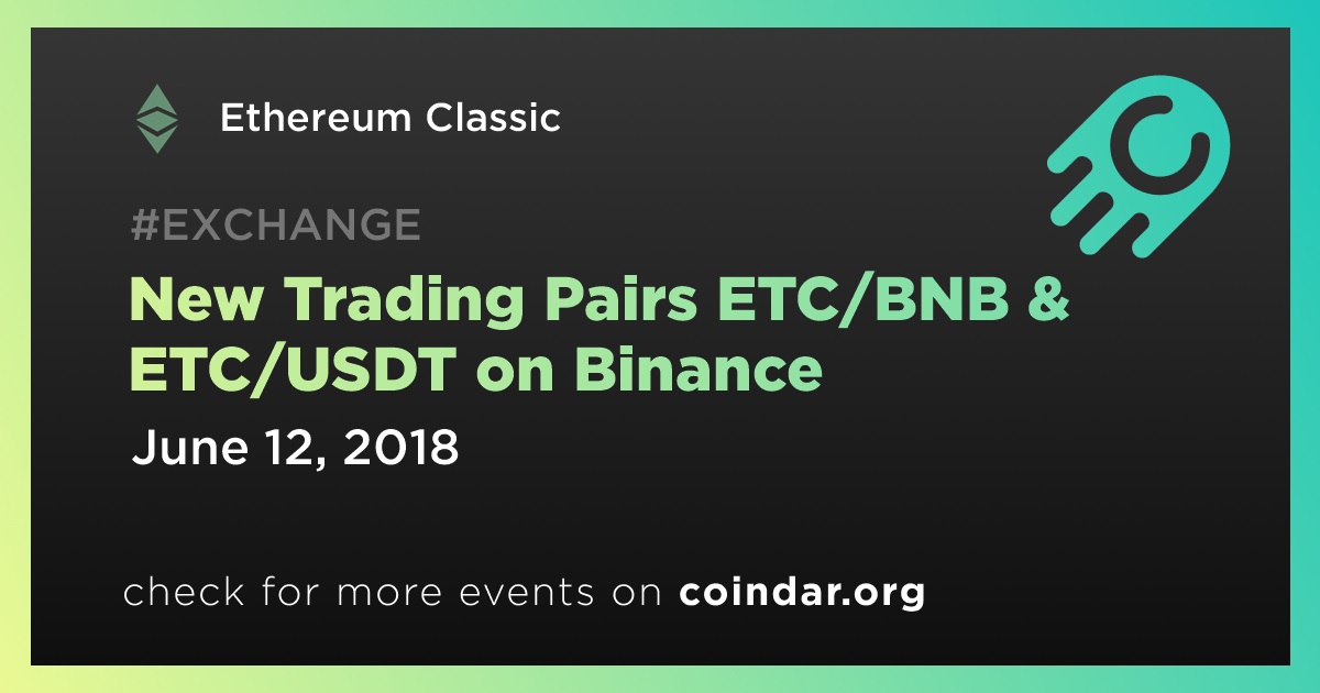 Ethereum Classic ETC: New Trading Pairs ETC/BNB & ETC/USDT on Binance