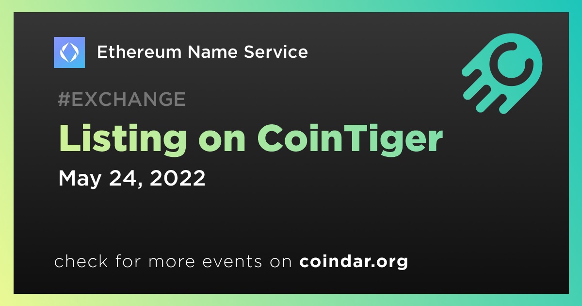 CoinTiger will be the 5th largest among the exchanges where Ethereum Name Service is listed