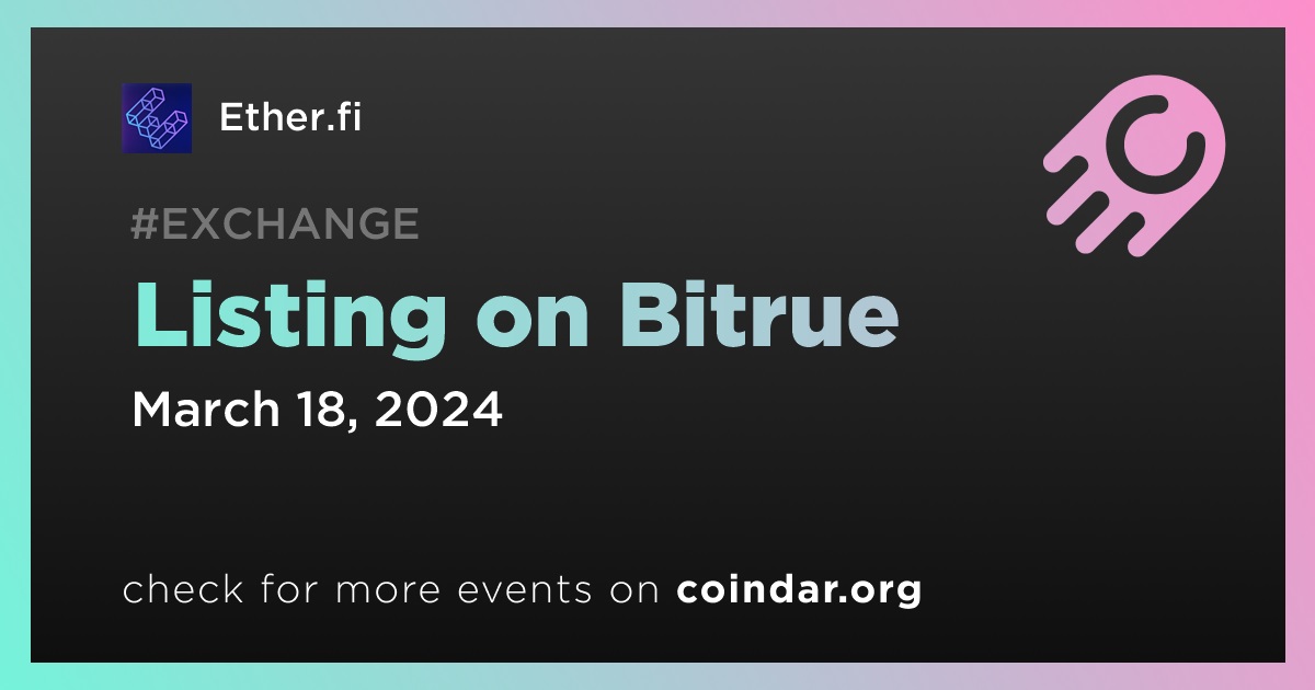 Bitrue will list Ether.fi (ETHFI) on the 18th of March at 12:00 UTC. The trading pair available will be ETHFI/USDT.