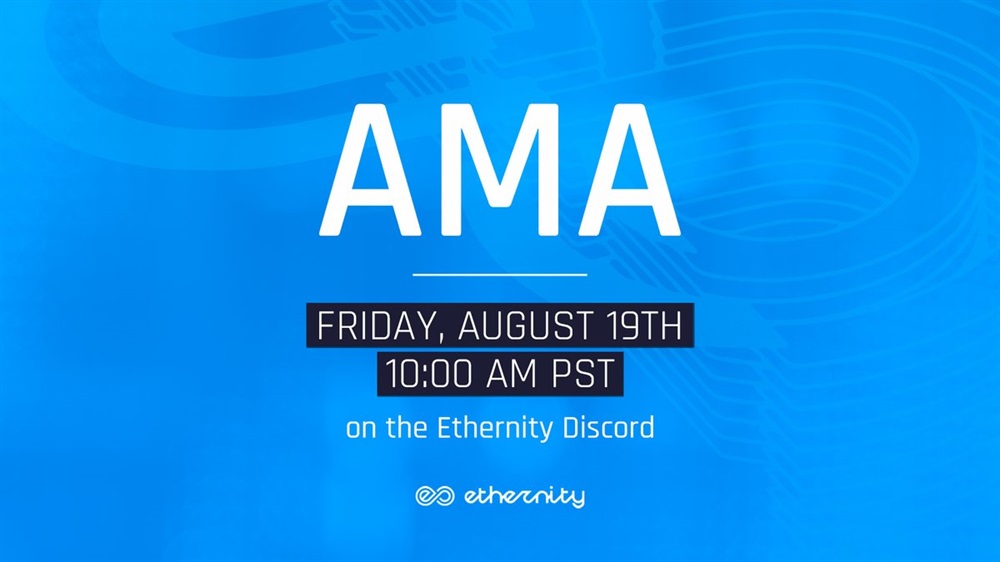 Join us on the #Ethernity Discord, Friday at 10 am PST, for an AMA with the Ethernity team! ♾
