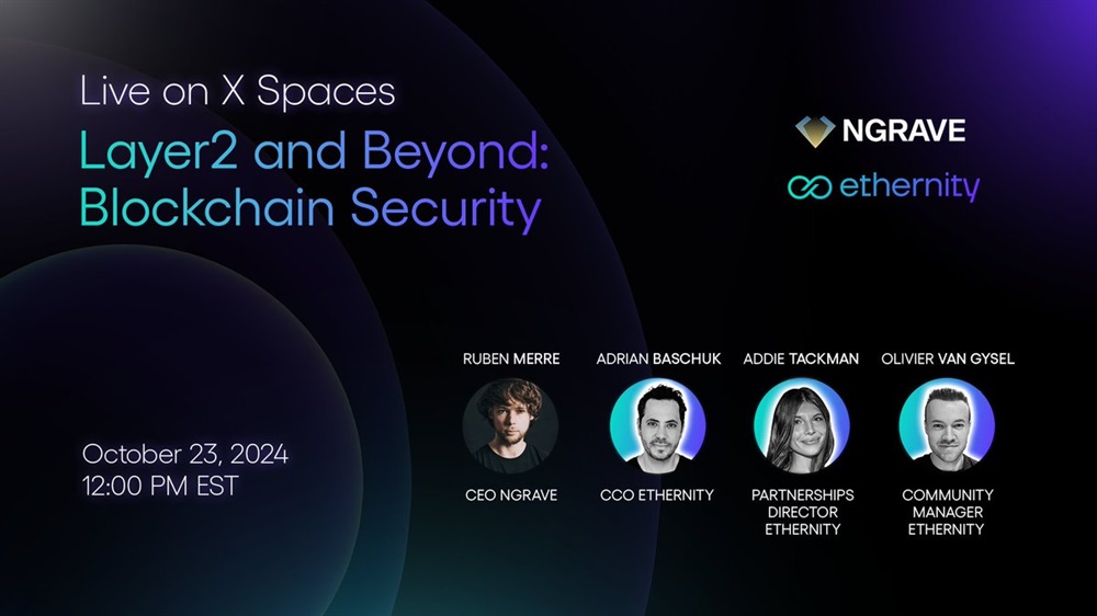 Ethernity Chain will host an AMA on X on October 23rd at 16:00 UTC, featuring NGRAVE CEO Ruben Merre to discuss blockchain security.