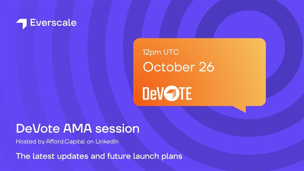 Everscale will host an AMA on X on October 26th. The session will focus on DeVote, a Web3 startup that is developing a universal solution for indisputable elections.