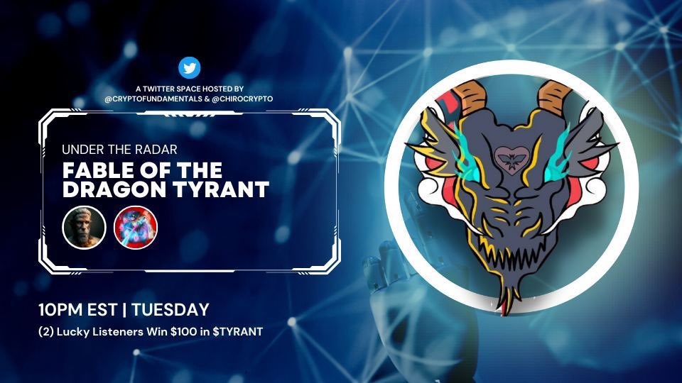 We are excited to Talk TYRANT with our incredible friends @BlocksNThoughts & @chirocrypto as they host a TYRANT AMA 🎙️