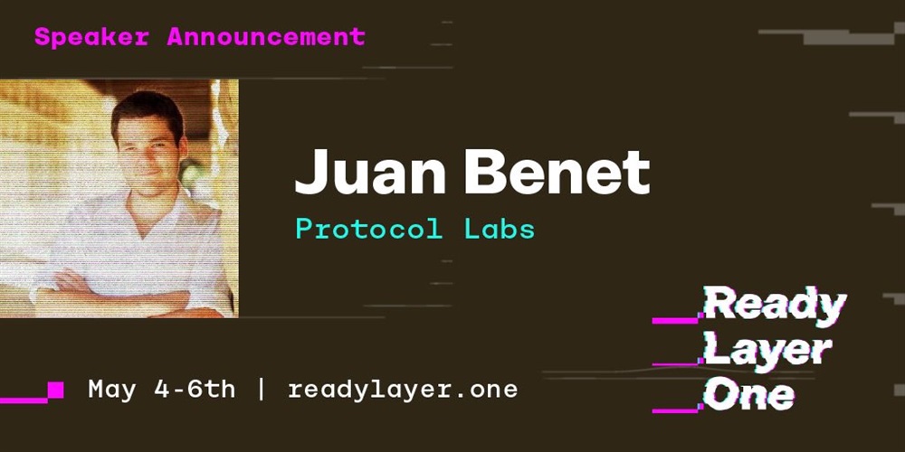 We’re delighted to announce that Protocol Labs’ founder @juanbenet, will be speaking at @ReadyLayerOne next week hopin.to