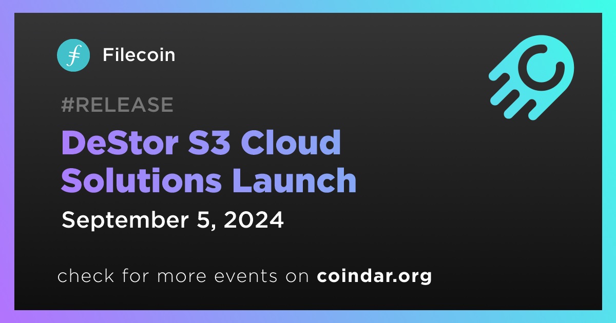 Filecoin has announced the launch of DeStor S3 Cloud Solutions on September 5th. This enterprise-ready, decentralized storage solution is powered by Dcent, a platform that aims to decentralize the web. The new solution is integrated with Filecoin, providing secure, scalable, and verifiable storage through a transparent marketplace.