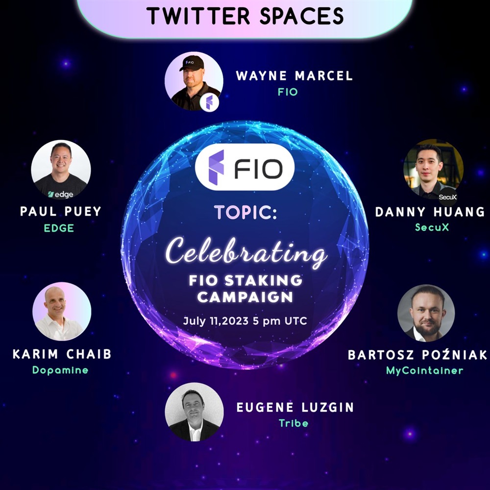 FIO Protocol will host an AMA on Twitter featuring guests from Edge, Dopamine, MyCointainer, SecuX, and CryptoTribeDAO to celebrate FIO staking campaign launch. The event is scheduled for July 11th.