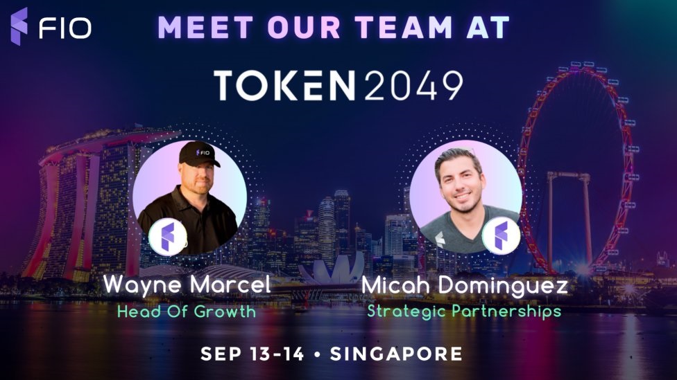 FIO Protocol will participate in the Token2049 event in Singapore on September 13th-14th. The event will feature prominent figures from Fio Protocol head of growth, Wayne Marcel and head of strategic partnerships, Micah Dominguez.