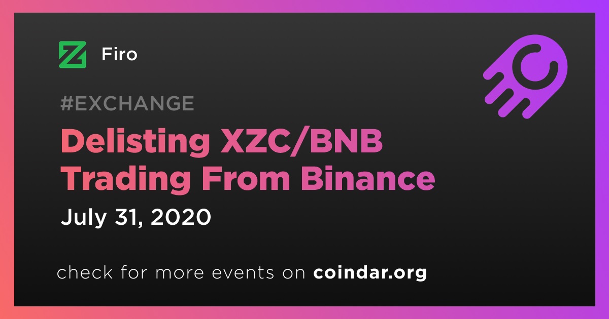Firo: Delisting XZC/BNB Trading From Binance