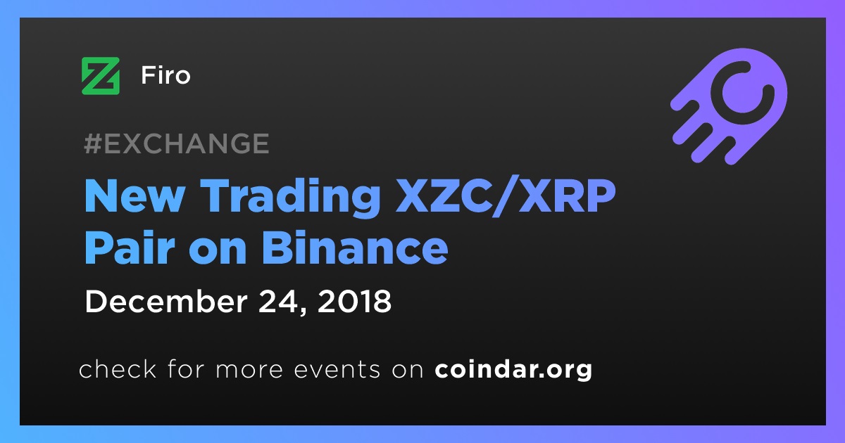 Firo: New Trading XZC/XRP Pair on Binance