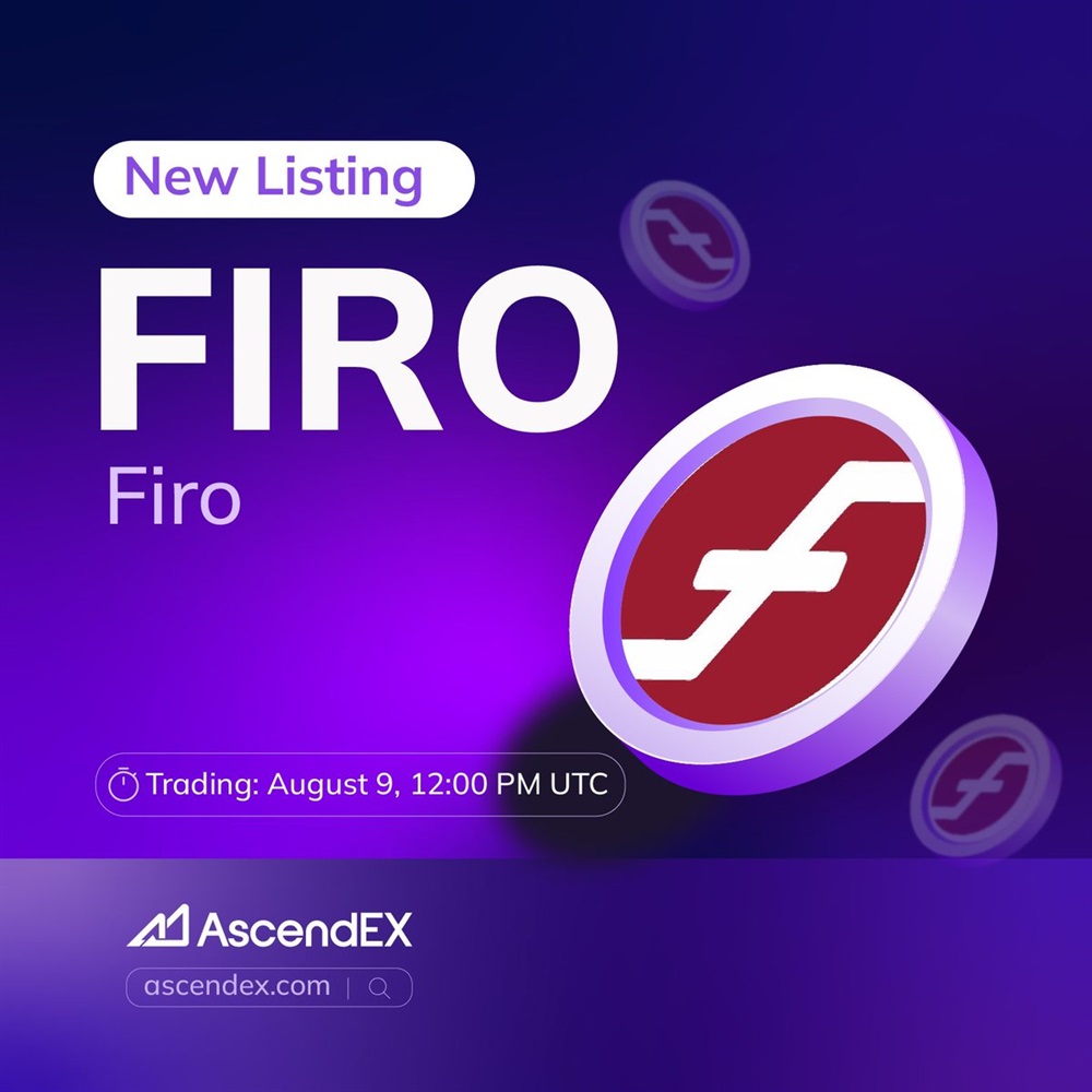 AscendEX will list Firo under the FIRO/USDT trading pair on August 9th.