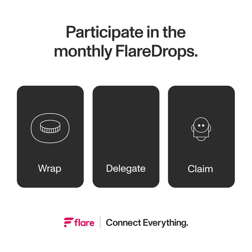 A series of 36 monthly FlareDrops totaling 24.2 billion FLR can be claimed by active community members who have wrapped their #Flare tokens.