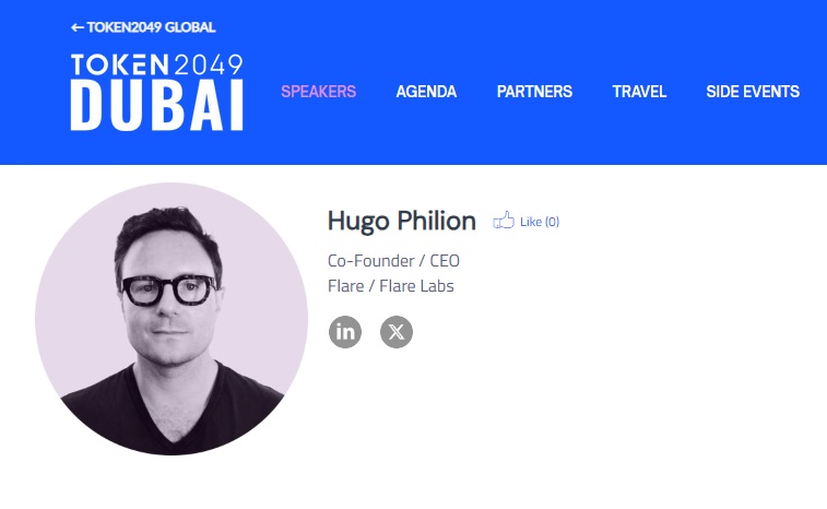 Flare Network’s co-founder and CEO of Flare Labs, Hugo Philion, will be speaking at the TOKEN2049 conference in Dubai on April 18th.