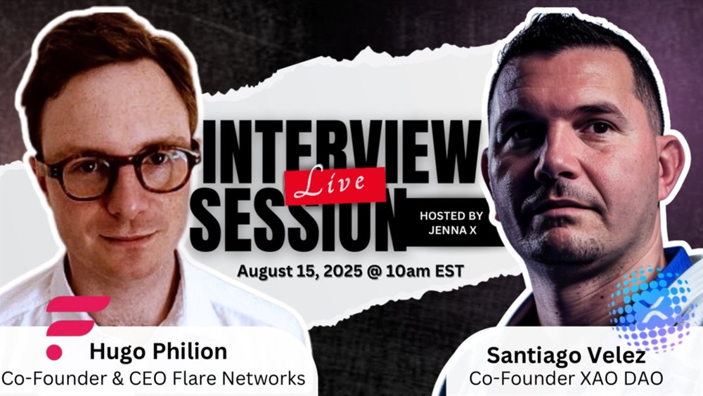 Flare will hold a live interview on YouTube on August 15th at 15:00 UTC featuring the co-founder of Flare, Hugo Philion, and the co-founder of XAO DAO, Santiago Velez. The session will address matters of decentralization, the network’s interaction with XRP and developments within the DeFi sector.