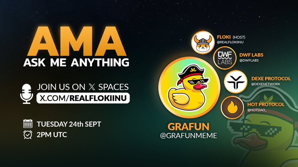 FLOKI will host an AMA on X with GraFun on September 24th at 2 pm UTC. The session will delve into the unique features of GraFun, its strategies to prevent pump-and-dump schemes and insights from its key partners.