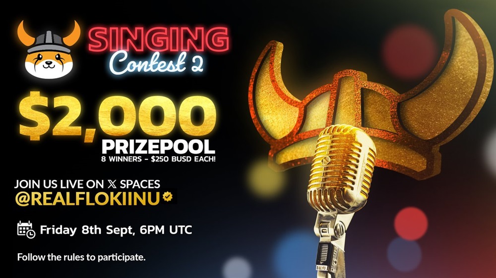 FLOKI is organizing its second singing contest on September 8th at 6 pm UTC on X. The contest is designed to showcase the musical talent and creativity of participants through original Floki songs, each lasting no more than 60 seconds.