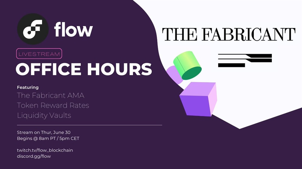 Office Hours #onFlow are back after taking a week off! We'll be joined by @thefabricant, PLUS talking about Token Reward Rates & Liquidity Vaults