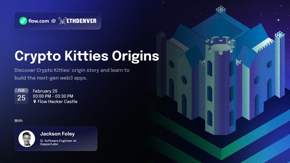 Flow announces an upcoming event titled “Crypto Kitties Origins” scheduled for February 25th, from 03:00 PM to 03:30 PM UTC in Denver. The event will feature a discussion on the origins of Crypto Kitties and insights into creating next-generation consumer applications.