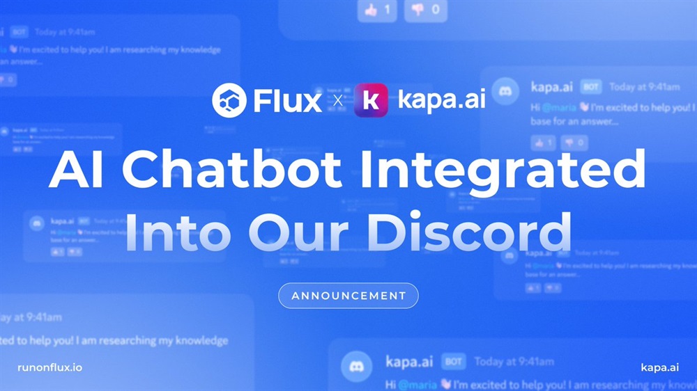 FLUX has announced the integration of the kapa.ai bot into the platform. This bot, which is a knowledgebase and support tool, is equipped with information on various FLUX products such as Flux, FluxEdge, FluxCloud, Zelcore, SSP Wallet, and more.