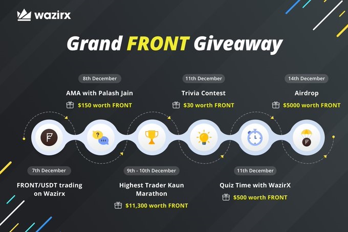WazirX is organizing a Grand FRONT Giveaway via a host of activities!