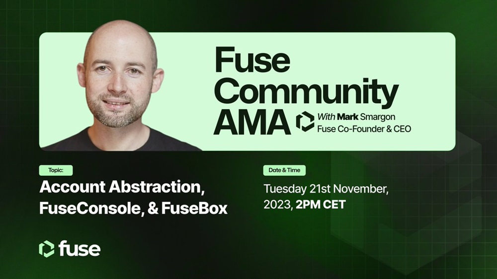 Fuse Network Token will host an AMA on Telegram with the CEO of Fuse Labs, Mark Smargon, on November 21st at 1:00 pm UTC. The discussion will focus on account abstraction on Fuse and the recent releases of FuseConsole and FuseBox products.