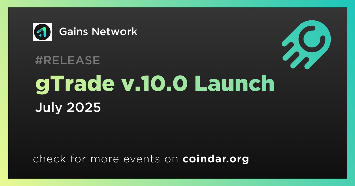 Gains Network has announced that the gTrade v.10.0 upgrade will go live in July.