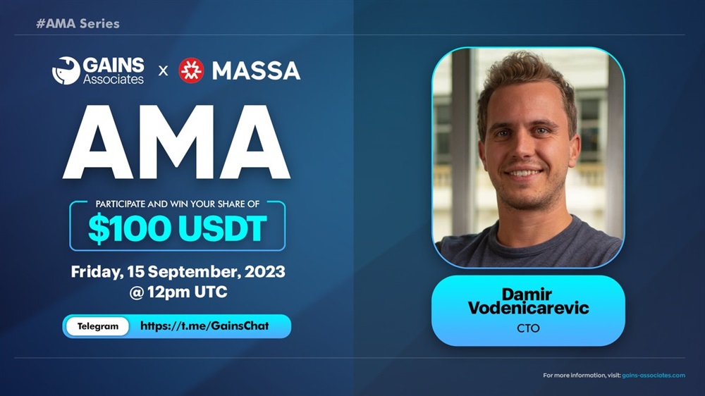 Gains will host an AMA on Telegram with Damir Vodenicarevic, CTO from Massa Labs. The event is scheduled to take place on September 15th.