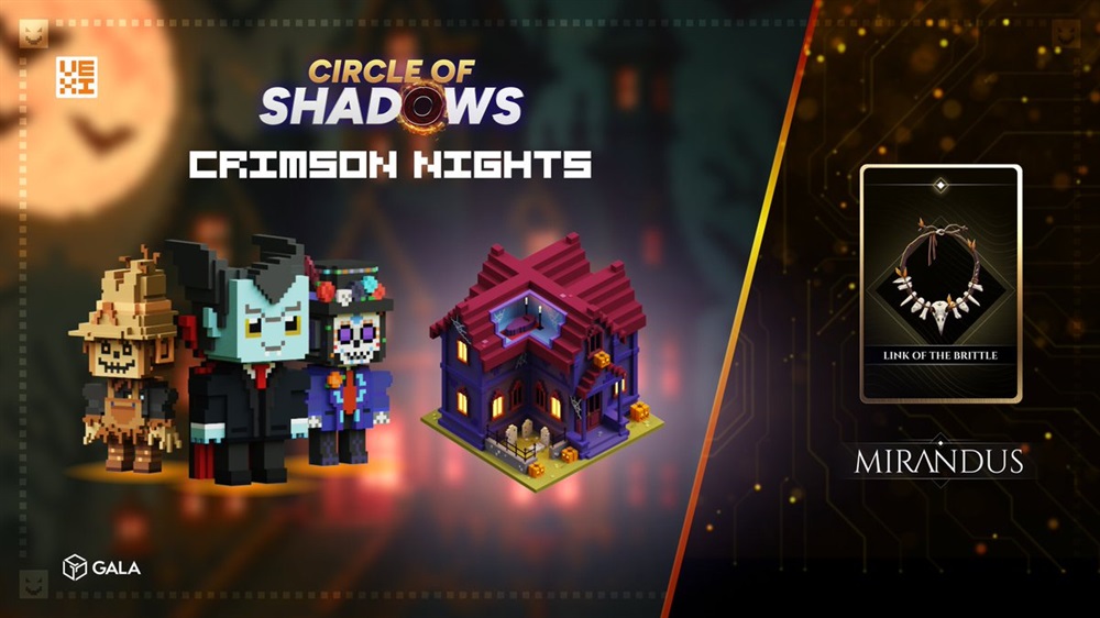 GALA is introducing Crimson Nights to VEXI Villages as part of its Halloween Building Event, starting on October 23. Players will be able to construct themed buildings and earn dark-themed rewards, including the Rare Mausoleum and the Uncommon Link of the Brittle, which will have future use in Mirandus.