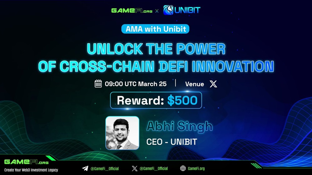 GameFi will host an AMA on X with Unibit on March 25th at 09:00 UTC. The guest will be Abhi Singh, the CEO of UNIBIT.