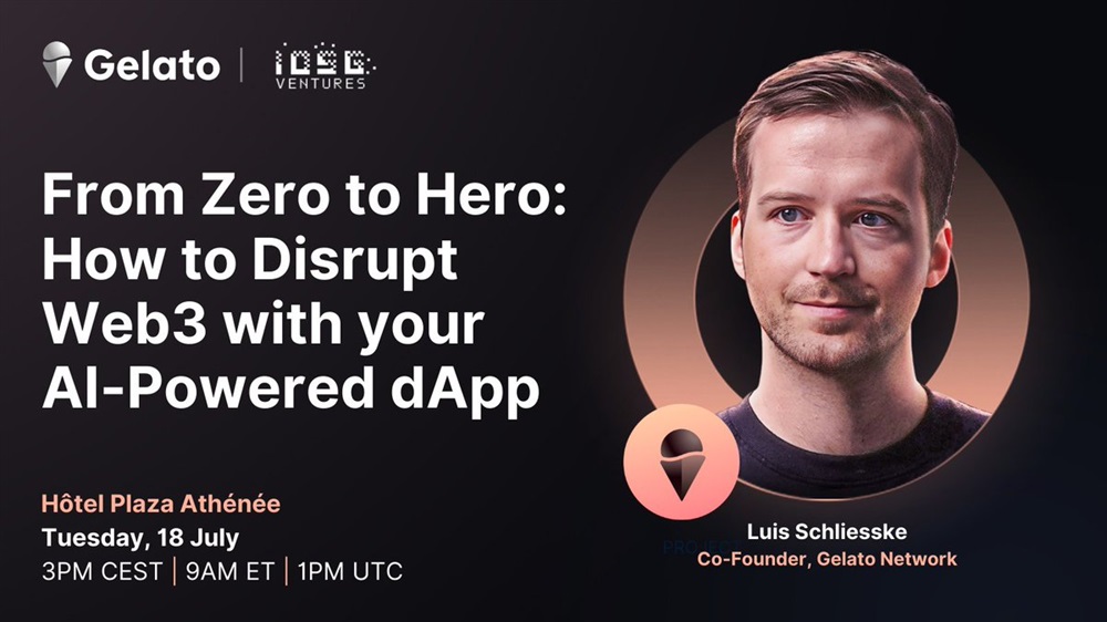 Gelato's cofounder, Luis Schliesske will hav a speech on “How to Disrupt Web3 with your AI-Powered dApp” at the IOSG Ventures event at EthCC — Ethereum Community Conference on 18th July.