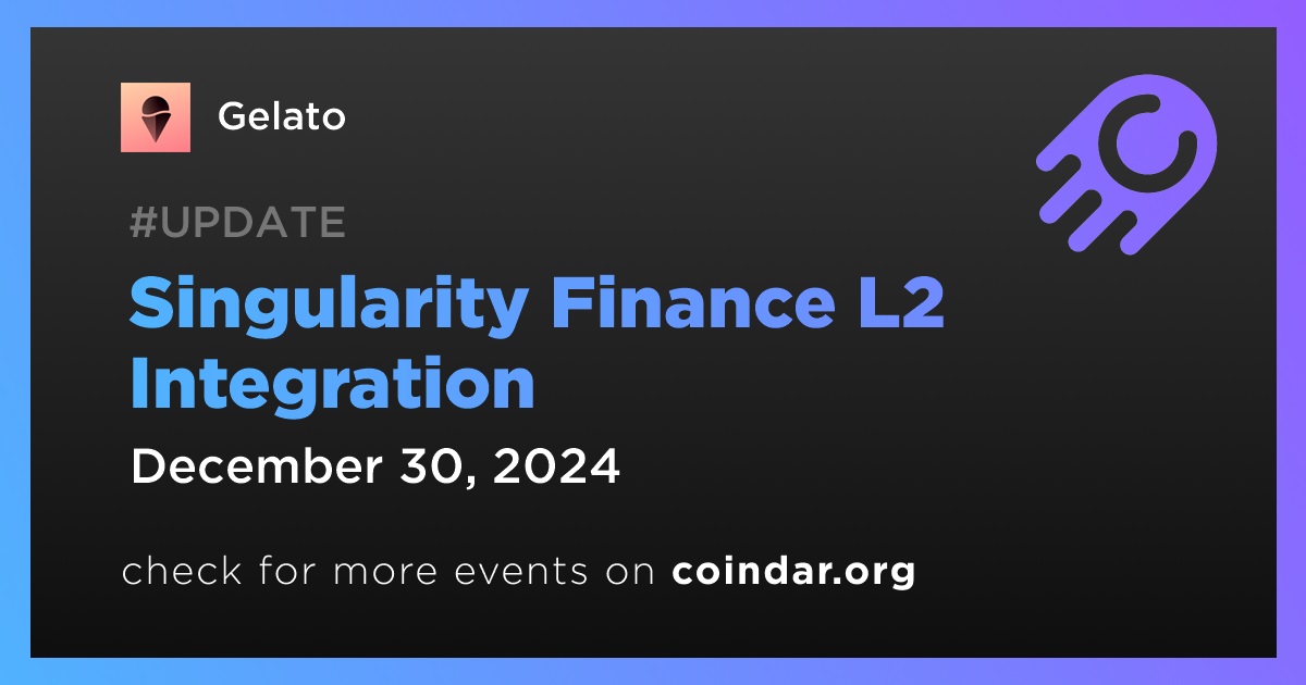 Gelato to Be Integrated With Singularity Finance L2