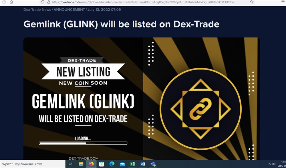 GemLink GLINK: Listing on Dex-Trade