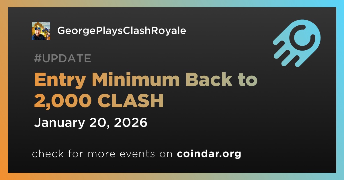 George Plays Clash Royale reported that the minimum entry requirement has been reduced back to 2,000 CLASH, restoring a lower participation threshold while keeping the existing prize structure unchanged; according to the update, holding 2,000 CLASH at the required checkpoints is sufficient to remain eligible, a move aimed at increasing participation without altering rewards.