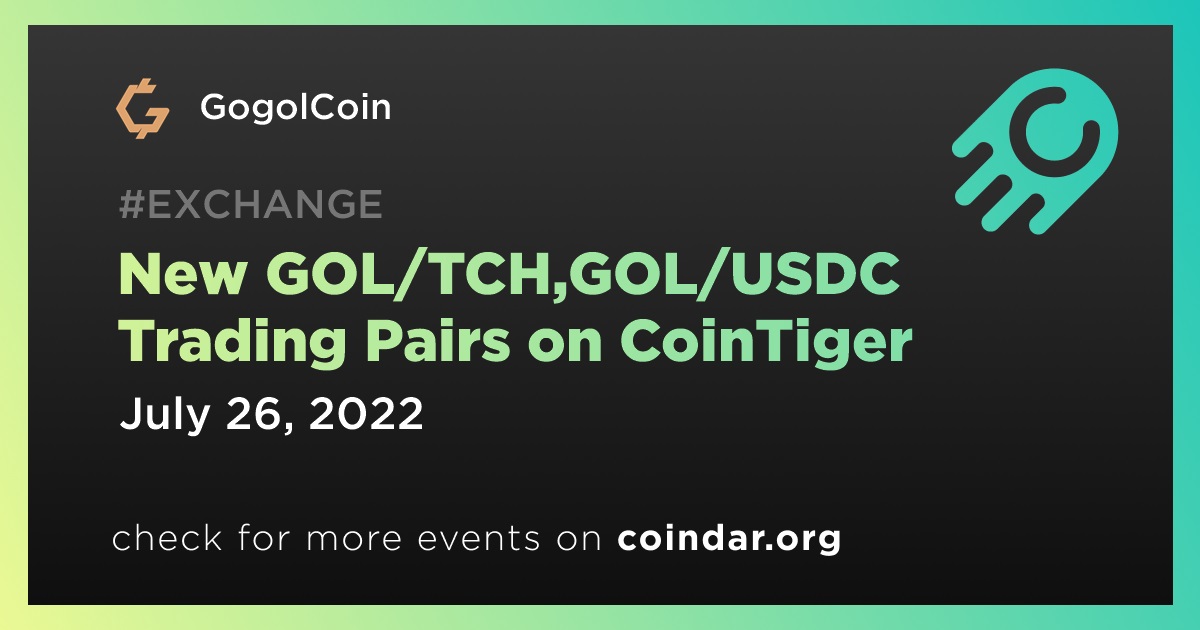 #GOL/TCH and GOL/USDC trading pairs will be available on #CoinTiger at 10:00 am on 26 July 2022 (UTC).