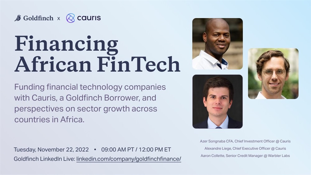 Join Goldfinch and Caurisfinance for a conversation on Financing African FinTech, and perspectives on sector growth across the continent